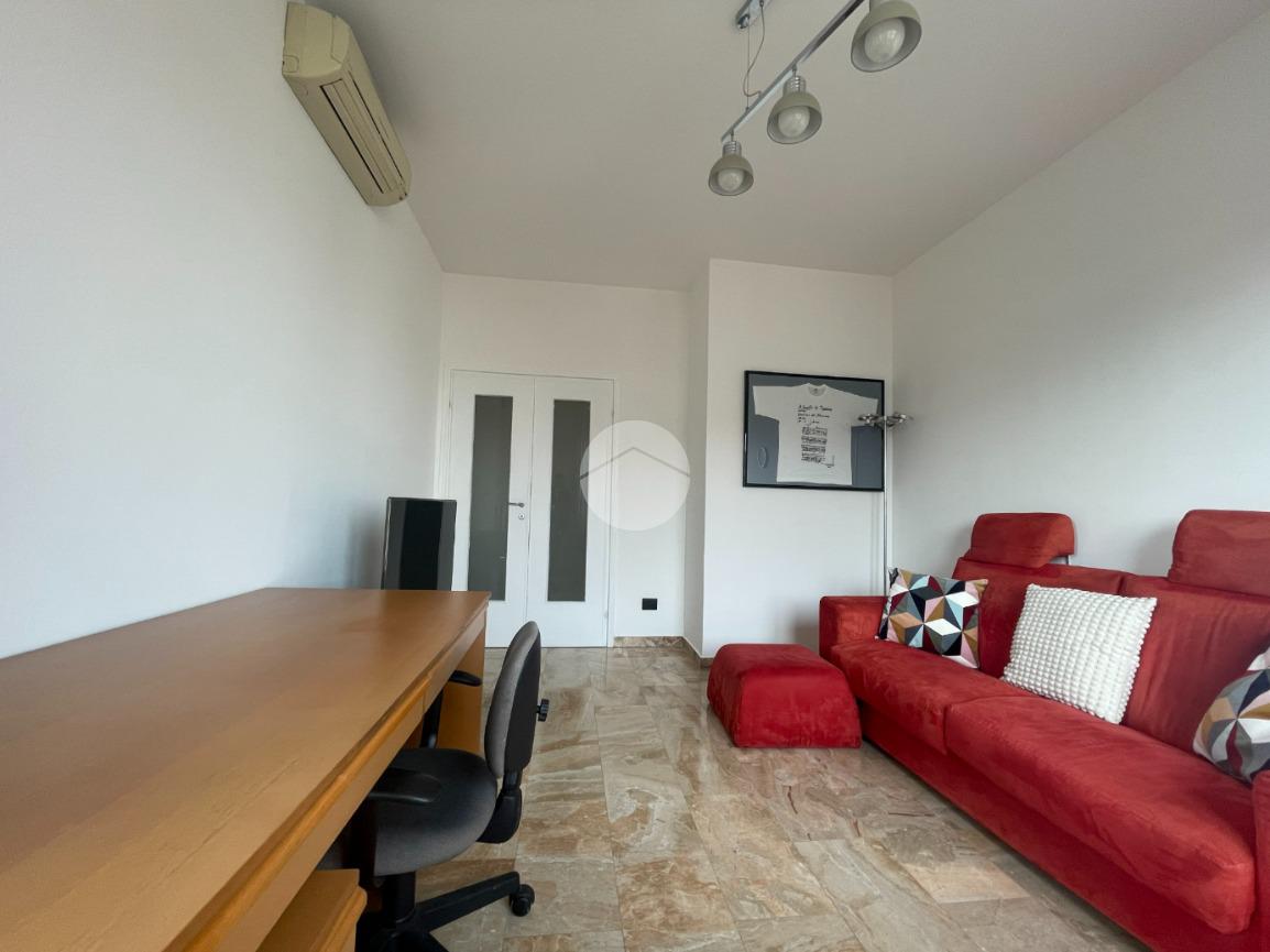 In contesto signorile, con giardino piantumato e servizio di portineria per l'intera giornata, proponiamo in locazione comodo bilocale al piano alto, con cucina separata, ampia balconata lungo tutto l'appartamento, completamente arredato e climatizzato.